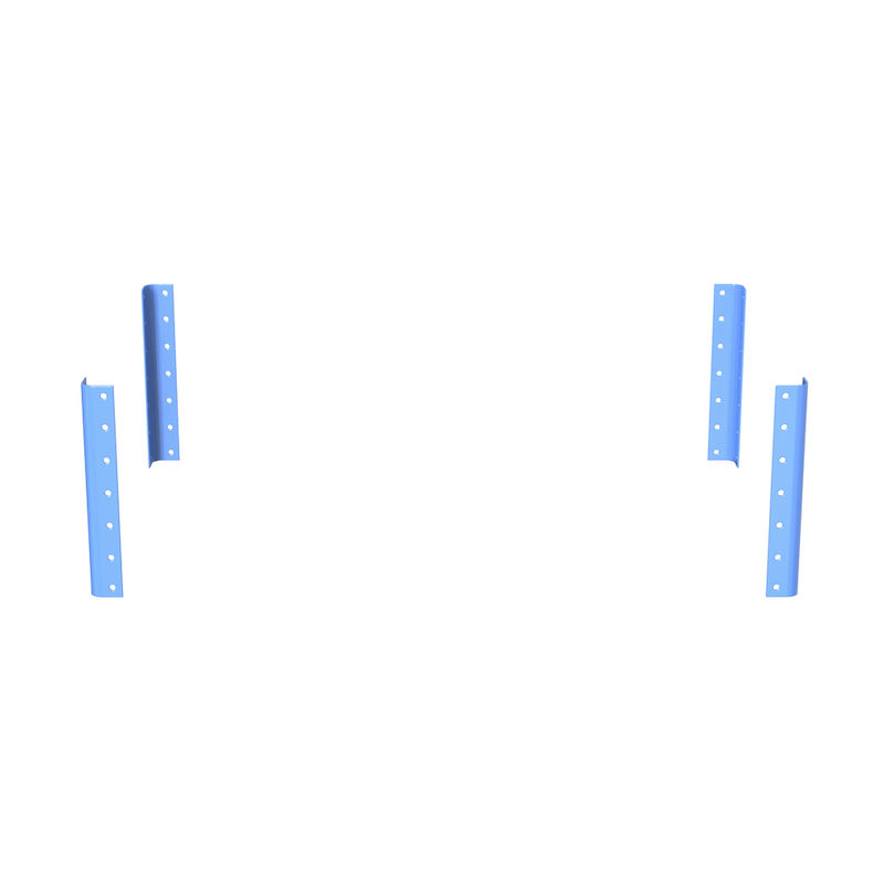 Kulmapylväät CustomLine, taso- ja hyllyvaunuun, korkeus 325 mm, 4 kpl/pakkaus, vaaleansininen RAL 5012. Rei’itetyt kulmapylväät kuuluvat CustomLine-sarjan taso- ja hyllyvaunuun. Niiden avulla voit koota vaunusi yksittäisistä osista tai laajentaa olemassa olevaa vaunua. Neljässä kulmapylväässä on rei’itys 50 mm:n jaolla. Niiden avulla vaunu voidaan rakentaa tarvittavan korkeaksi ja korkeutta voidaan myös säätää joustavasti. Vaihtoehtona yksittäisosille saatavilla on myös valmiiksi koottuja erikokoisia taso- ja hyllyvaunumalleja. Kaksi väriä.
