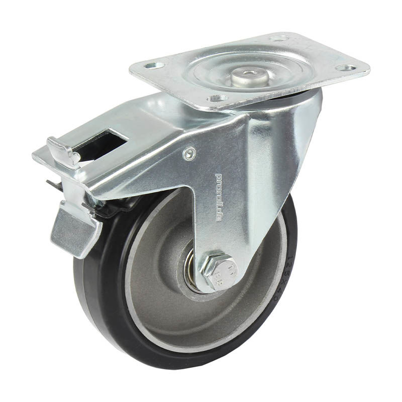 Joustava umpikumipyörä, kääntöpyörä kaksoisjarrulla, ØxL 125x40 mm, maks 200kg, levy 135x105mm. Alumiinivanteella. Pieni vierintävastus, hiljainen kulku. Erinomainen ajomukavuus, hyvä joustavuus. Lämpötilankesto –20 °C +70 °C. Kotelo galvanoitua teräspeltiä, kääntölaakerissa kaksinkertainen kuulakehä, kääntölaakerinsuoja. Vulkanoitu pinta. Tarkkuuskuulalaakeri.