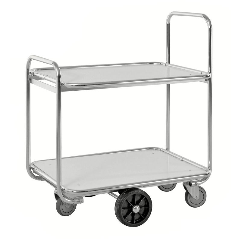 Keräilyvaunu Vanna, 2 hyllytasoa, PxLxK 900x630x1100 mm. Max. kuormitus 300 kg, max. 125 kg/taso. 4 kääntöpyörää, Ø 125 mm ja 2 kiinteää Ø 200 mm. Kokonaiskorkeus 1100 mm.