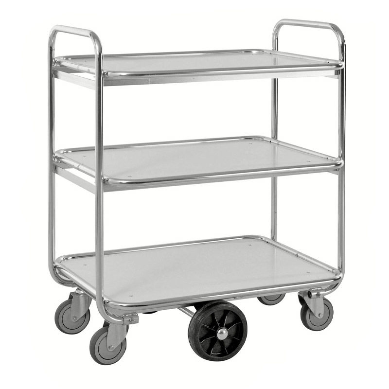 Keräilyvaunu Vanna, 3 hyllytasoa, PxLxK 900x630x1100 mm. Max. kuormitus 300 kg, max. 125 kg/taso. 4 kääntöpyörää, Ø 125 mm ja 2 kiinteää Ø 200 mm. Kokonaiskorkeus 1100 mm.