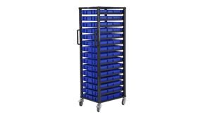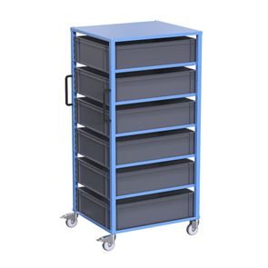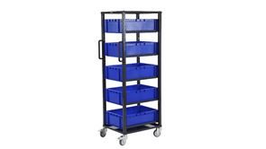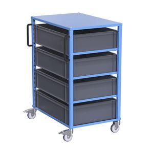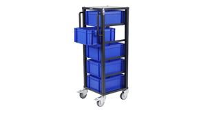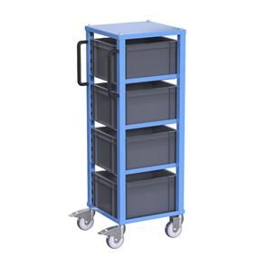 Kätevän itseasennusperiaatteen ansiosta voit muuttaa eurosäiliöiden varastovaunun rakennetta milloin tahansa tilanteen mukaan. Poimintavaunusta on saatavilla neljä kokoa, jotka voidaan yhdistää haluttuun määrään erikokoisia eurosäiliöitä. Valitse valikoimastamme valmiiksi koottu malli eurolaatikoiden kanssa tai valitse laatikkovaunu ilman eurolaatikoita ja kokoa sopivien lisävarusteiden avulla täydellinen yleisvaunu. Eurolaatikoiden tasokiskot voidaan kiinnittää halutulle korkeudelle telineen sisällä. Tämä mahdollistaa erilaiset jaottelut ja erikorkuisten laatikkojen kätevän käytön. Tolppien rei’ityksen ansiosta säiliöiden jaottelu voidaan toteuttaa helposti ja joustavasti 50 mm:n välein.