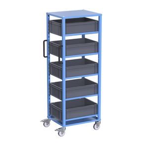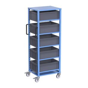 Laatikkovaunu Eurolaatikoille CustomLine, laatikoille mitoilla PxL 400 x 300 mm, harmaa, 5 laatikkoa, korkeus 120 mm. Eurolaatikoiden varastovaunu on täydellinen ratkaisu teollisuus- ja tuotantoympäristöjen tarpeisiin. Tämä innovatiivinen kuljetuslaite kuuluu modulaariseen CustomLine-tuotesarjaamme, jonka monipuolinen yhdisteltävyys tuo käyttöön joustavuutta. Eurolaatikoiden varastovaunu on arjen luotettava apuri, joka mukautuu joustavasti tarpeisiisi ja tehostaa yrityksesi liiketoimintaa.