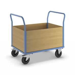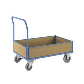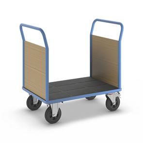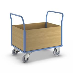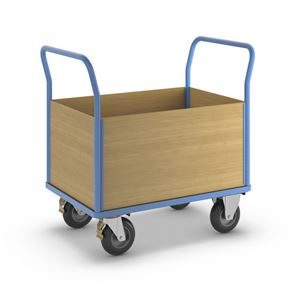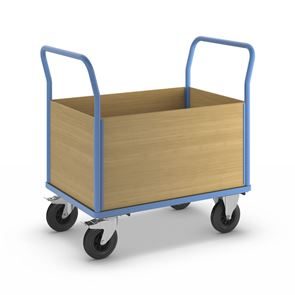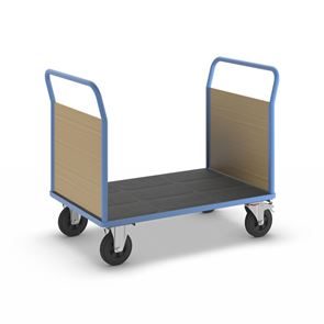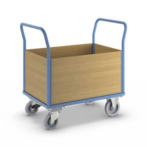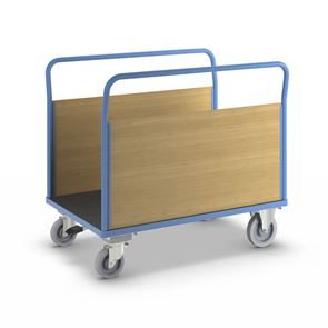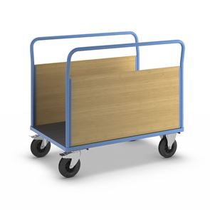 Lavavaunu Line, 1 päätyseinä, PxL 1050 x 700 mm, vaaleansininen. Puulaidoilla varustettu lavavaunu on kätevä ja monipuolinen kuljetusratkaisu, ja sen päädyt tukevat kuorman kiinnitystä. Hitsattu, jauhemaalattu teräsrakenne takaa vakauden ja pitkän käyttöiän. Erikseen irrotettavat laidat ovat pinnoitettua MDF-levyä ja mahdollistavat joustavan käytön. Kuormatason korkeus 280 mm, tukeva kierrätysmuovista valmistettu kuormataso. Vaunu kuljettaa vaivatta raskaatkin kuormat, ja kuormatason luistamaton ja kulutusta kestävä pinta on lisäksi öljynkestävä ja säänkestävä ja kestää hyvin happoja. Tämä tehokas, turvallinen ja kestävä vaunu helpottaa päivittäisiä tavarakuljetuksia varastoissa, teollisuudessa ja tuotantoympäristöissä.