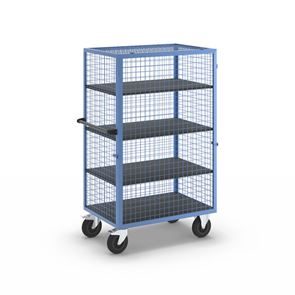 Turvarullakko, irrotettava verkkoseinä, 1 hyllytaso, vaaleansininen. eurokraft pro -turvarullakon etuina ovat tukeva rakenne ja monipuoliset käyttömahdollisuudet. Tämä teollisiin sovelluksiin sopiva rullakko mahdollistaa tavaroiden ja materiaalien järjestelmällisen varastoinnin ja turvallisen kuljetuksen.