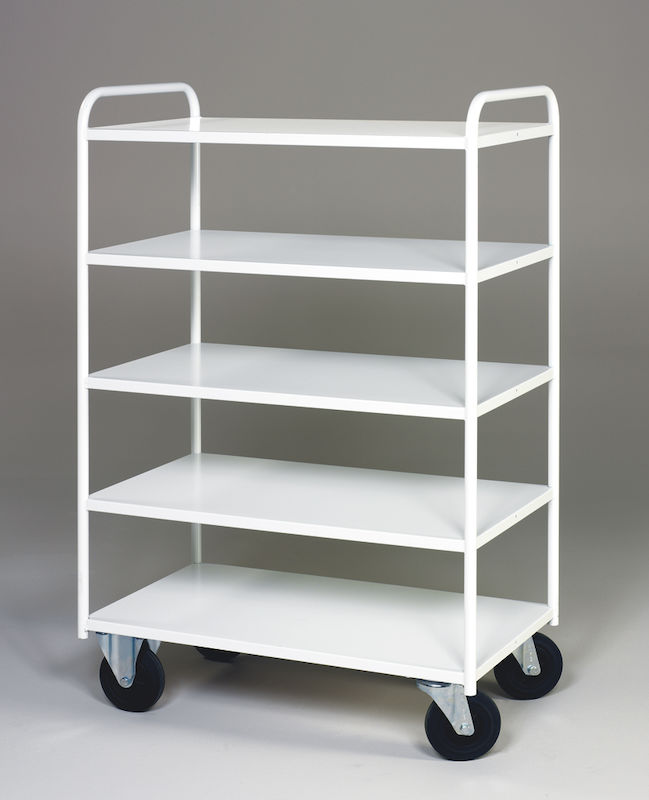 Hyllyvaunut, PxLxK 955x550x1470 mm, 5 hyllytasoa, valkoinen