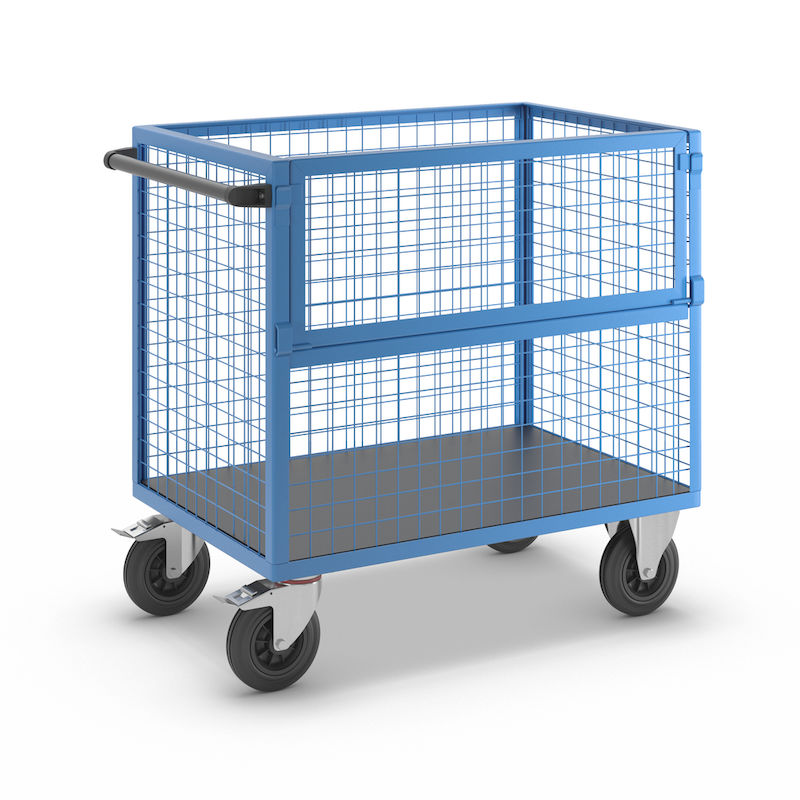 Työkalukärry Lisen, teräsverkkoseinät, ilman kantta, PxL 1050 x 700 mm. Vankka rakenne kulmaterästä. Toinen pitkittäissivu puolittain taitettava.
