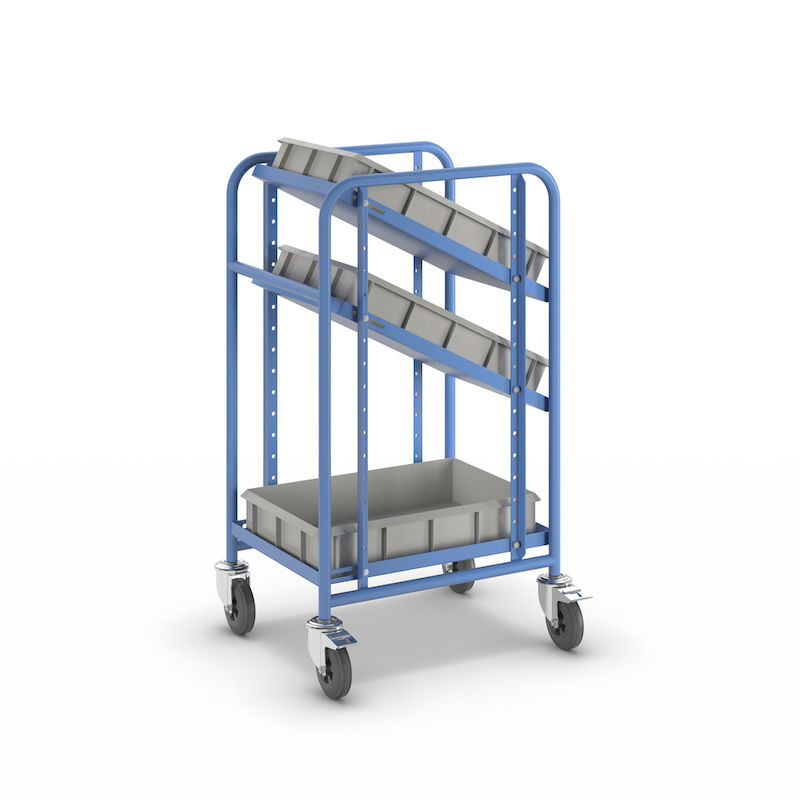 Keräilyvaunu Katja, 3 laatikkoa, PxLxK 485 x 620 x 1100 mm. Jauhemaalattu teräsrakenne, vakiona vaaleansininen RAL 5012.