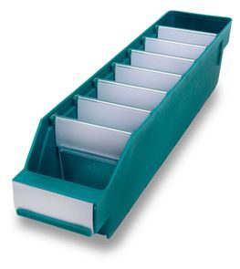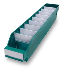 Lisävarusteet: Läpinäkyvät laatikonjakajat, pidike, etiketti ja laatikkostoppari.