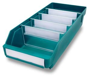 Lisävarusteet: Läpinäkyvät laatikonjakajat, pidike, etiketti ja laatikkostoppari.