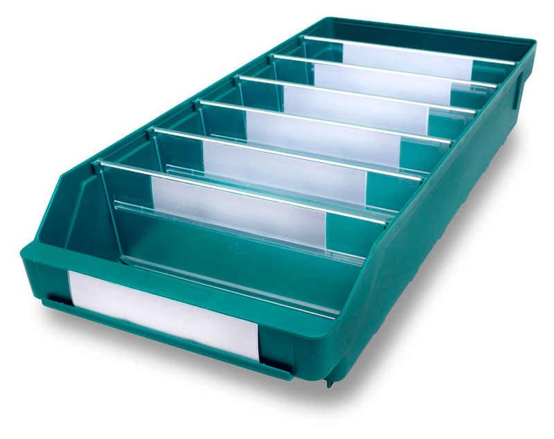 Lisävarusteet: Läpinäkyvät laatikonjakajat, pidike, etiketti ja laatikkostoppari.
