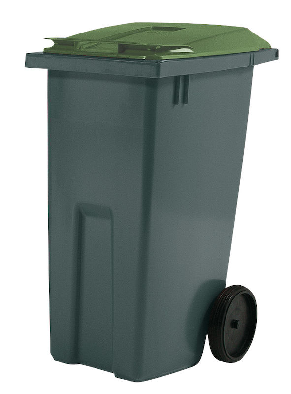 Jäteastia PWS, 190 l, harmaa/vihreä, lukemattomilla käyttömahdollisuuksilla. Välttämätön työpaikalla. Voidaan käyttää roskiksena tai paperin, metallin, lasin tai muun ei-kertakäyttöisen jätteen keräysastiana. Jätesäiliö on valmistettu UV-vakaasta HD-polyeteenistä. Muoto, koko ja pyörien sijainti on lopputulos perusteellisista ergonomisista tutkimuksista. Jäteastia on siksi helppo siirtää, tyhjentää ja puhdistaa. DIN sertifioitu EN 840 mukaisesti.
