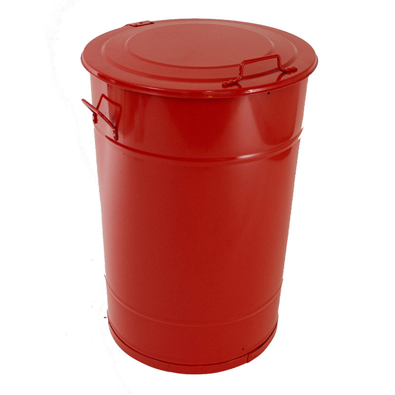 Terästynnyri, 115 l, K 780 mm, punainen. Valmistettu kuumasinkitystä teräksestä, värittömänä tai maalattuna. Sopii säilytysastioiksi, trasseleille tai palonaroille jätteille. Polkimella tai ilman.
