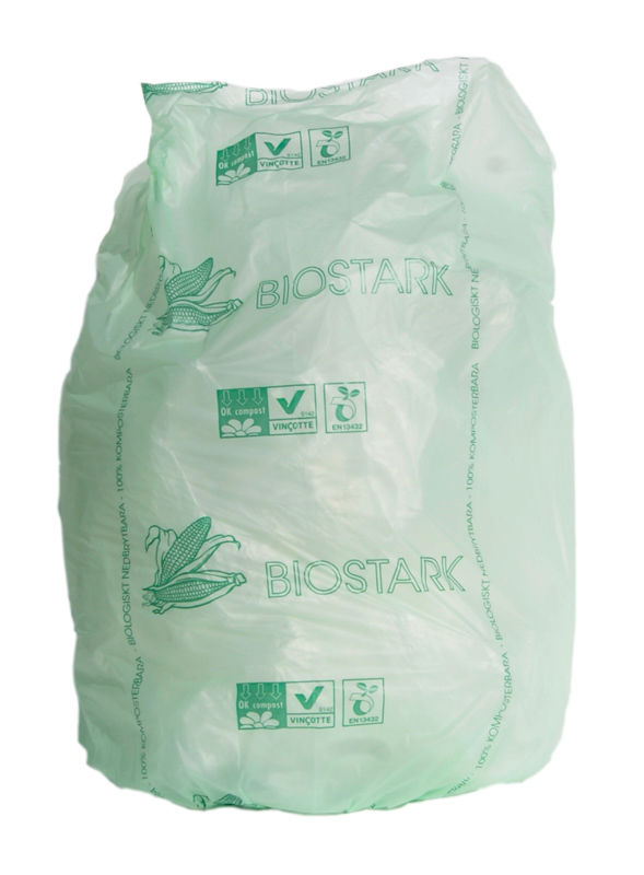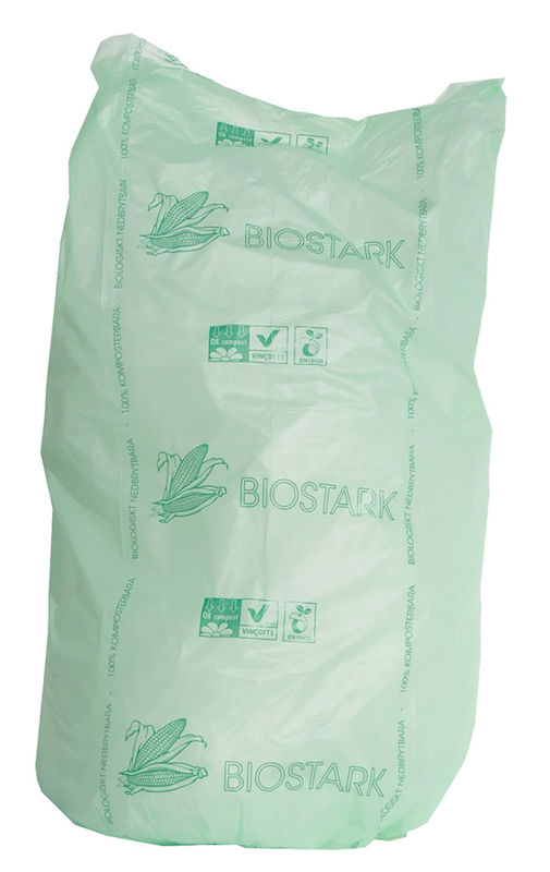 Jätesäkki BIOSTARK, 80L, 820x1050mm. Jätesäkki Biostark on täysin biohajoavaa ja kompostoitavaa. Kaikki säkit on testattu ja vertifioitu EN13432 sertifikaatin mukaan. Tämä Biostatk jätesäkki sopii erityisen hyvin kompostoitavan materiaalin käsittelyyn.