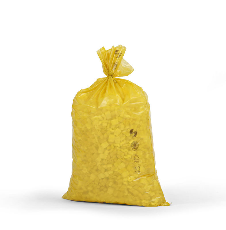Jätesäkki Marika, 40 µm, LxK 575 x 1000 mm, 250 kpl/pakkaus, keltainen. PREMIUM-jätesäkit valmistetaan valikoidusta uusiogranulaatista. Huippunykyaikaiset valmistusmenetelmät takaavat tasaisen korkean laadun – jota kuvaa myös suojattu PREMIUM-tavaramerkki. LDPE:stä valmistettujen jätesäkkien puhkaisu- ja repäisylujuus on erinomainen. PREMIUM-tuotteemme sopivatkin äärimmäisen kovaan kuormitukseen.
