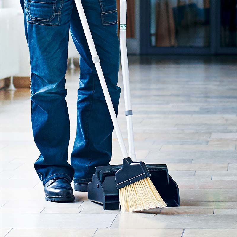 Rikkasetti Glan, rikkaharja teleskooppivarrella ja rikkalapio kannella. Lakaise tehokkaasti sekä sisä- että ulkotiloissa. Rikkalapiossa on kansi ja ergonominen, taivutettu varsi kädensijalla. Varsi on valmistettu alumiinista muovisella kädensijalla. Rikkaharjan varsi on valmistettu alumiinista ja sen pituus on säädettävissä, joten voit säätää varren pituuden omaan pituuteesi sopivaksi hyvän ergonomian saavuttamiseksi. Toimitetaan koottuna.