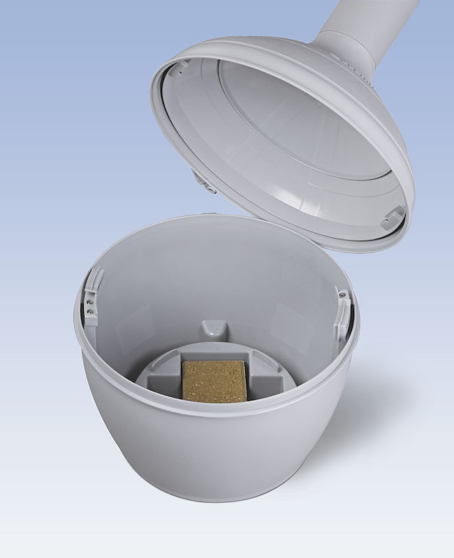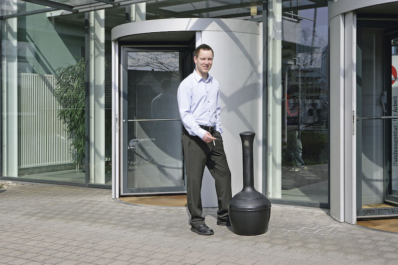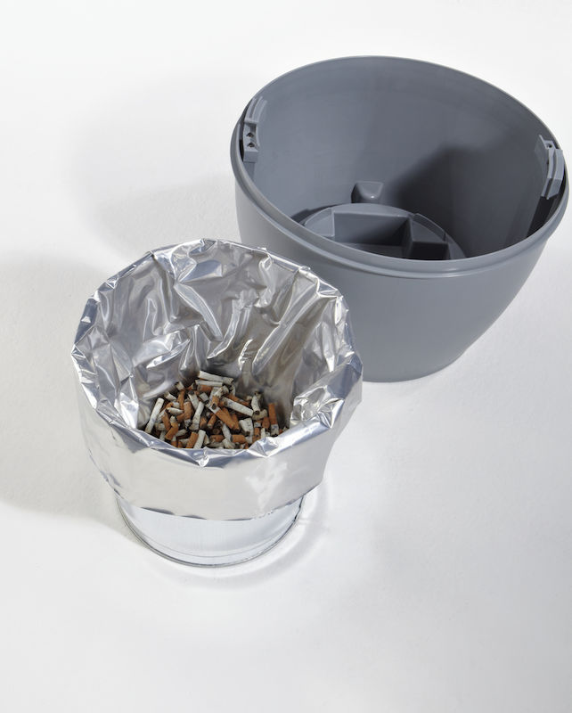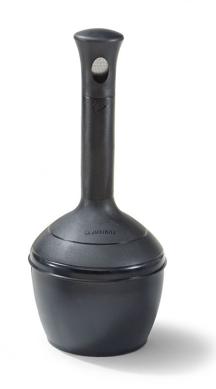 Tuhkakuppi Marcus, tilavuus 15 l, musta. Tuhkakupissa on pieni, sateelta suojattu aukko, joka estää jätteiden laittamisen tuhkakuppiin.