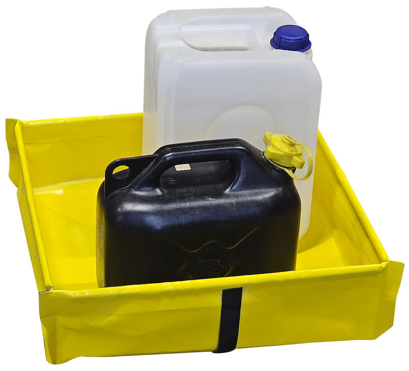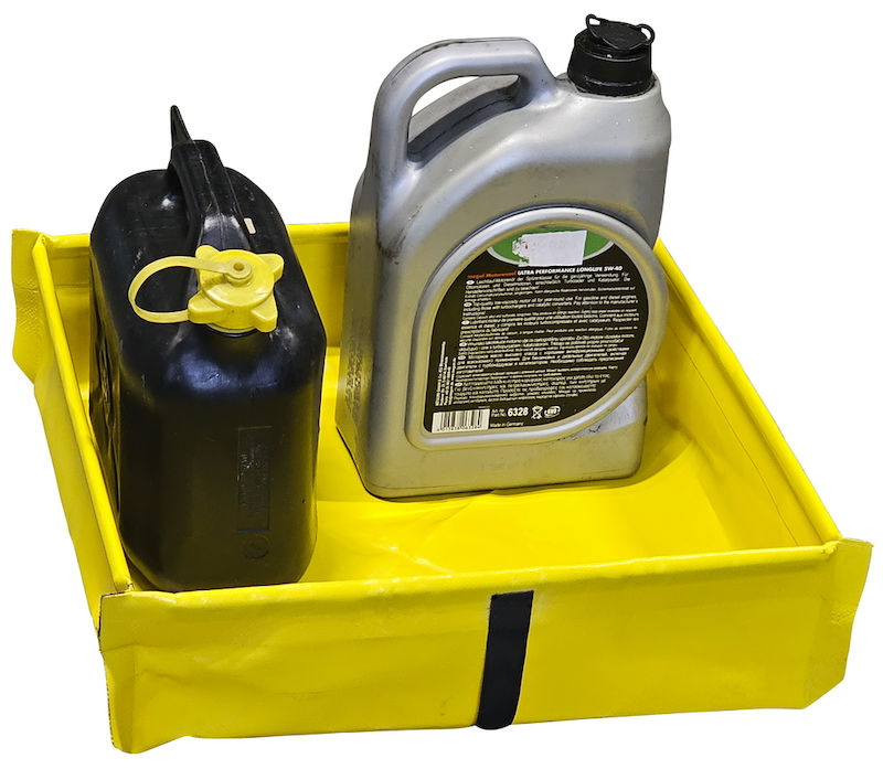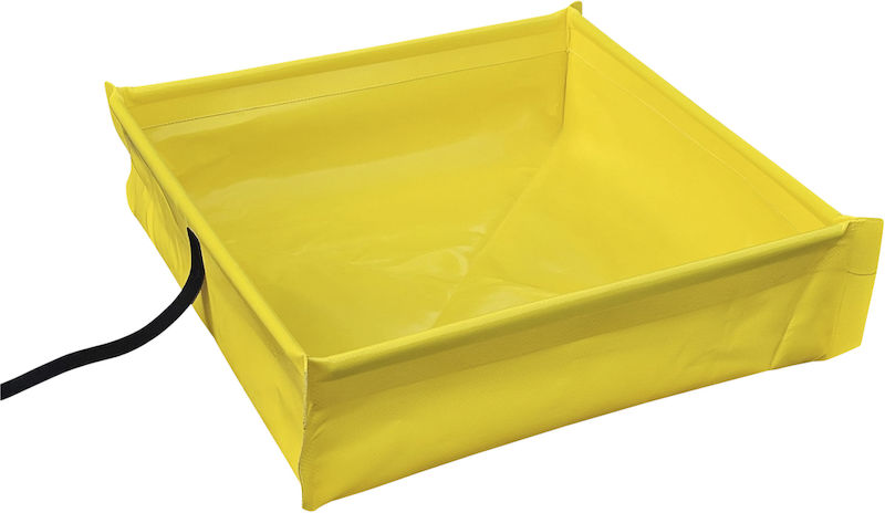 Varuste tynnyrille ja kaasupullolle Emmett, PVC, väri keltainen, keräystilavuus 19 l. Joustava ja kokoontaittuva vuotoallas PVC-muovista –